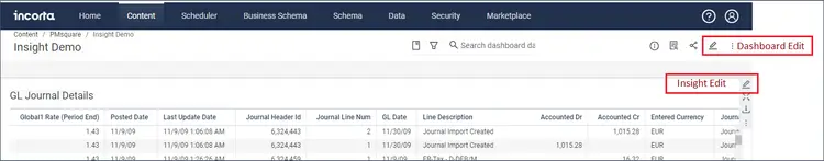 Note that there are two edit pens on the screen, the top one is to edit the Dashboard and the other one is the Insight edit pen.